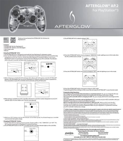 1 afterglow® ap.2 for playstation®3. Why doesn't my controller register a. Adult supervision is necessary when controller is used by child caution: